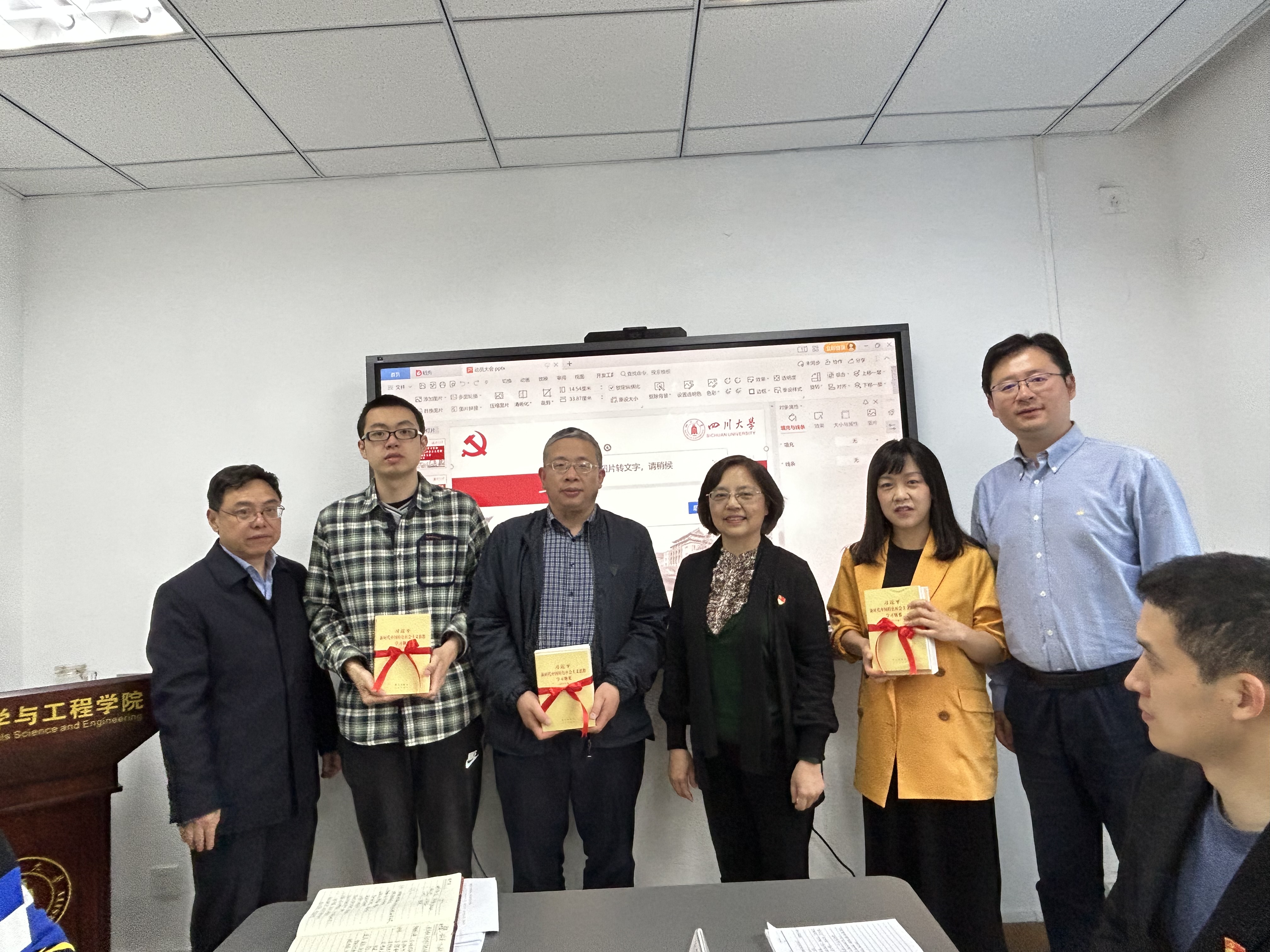 会后,举行了授书督学仪式。邱梅、徐海鑫、刘颖分别为新能源材料与器件教研中心党支部、博士生党支部、本科生望江党支部授予《习近平新时代中国特色社会主义思想学习纲要》《习近平著作选读》第一卷和第二卷,希望通过授书督导基层支部扎实开展主题教育,认认真真学、原原本本学,进一步增强工作本领。