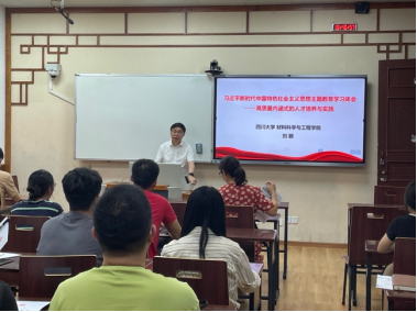 6月27日,学院党委书记徐海鑫为本科生望江党支部讲专题党课并召开主题教育专题调研座谈会。徐书记在授课中为大家深入浅出阐释习近平新时代中国特色社会主义思想的世界观和方法论,特别是习近平总书记在人才培养、科技创新等方面的系列重要论述和习近平总书记对广大青年成长成才的殷切嘱托。在调研座谈会上,徐书记深入了解同学们的学习生活情况,并一一回复解答同学们的疑问。最后徐书记鼓励同学们坚定政治立场,树立远大理想目标,把握材料学科最好的发展机遇,为中华民族伟大复兴和建设社会主义现代化国家贡献力量。