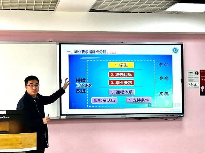 西南石油大学新能源与beat365中文官方网站王平教授作为工程专业认证的专家,为老师们解读了2024版专业认证自评报告的撰写指南。王老师从工程专业认证的毕业要求指标点分解、课程教学大纲的撰写、课程目标达成报告等方面,为大家详细解说了专业认证筹备工作的要点和方法。