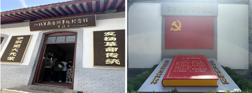 最后,全体党员来到八路军西安办事处纪念馆参观学习。西安事变和平解决后,中国共产党在此设立了红军联络处,1937年9月改为八路军驻西安办事处。办事处由于其特殊的政治地位和地理位置,在维护和推动全民族抗日运动的发展,宣传党的抗日主张、开展统一战线工作,为八路军领取、采买、转运物资,组织爱国青年奔赴延安等方面做了大量的工作,为中国人民抗日战争的胜利做出了巨大贡献。中国共产党、八路军的主要领导人周恩来、朱德、刘少奇、彭德怀、叶剑英、邓小平、林伯渠、董必武等曾多次留驻办事处并指导工作。大家认真参观了七贤庄1号院旧址原状复原陈列、3号院统战科旧址复原陈列、“千秋七贤庄-八路军驻陕办事处史实展”、"光辉的历程-中国共产党西安历史展"、 "永远的丰碑-全国八路军办事处史实展"等专题陈列。党员同志们通过承载着众多厚重红色记忆的文物,走进中国革命的艰辛历史,体会百年大党的奋斗初心,心中激荡万分,集体面对鲜红的党旗,重温入党誓词。
