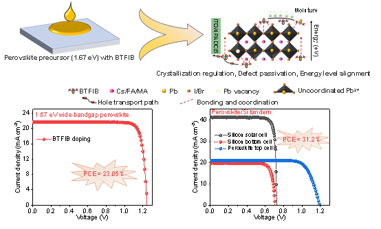 图1. BTFIB的作用机制及单结宽带隙钙钛矿和钙钛矿/晶硅叠层电池的光电性能