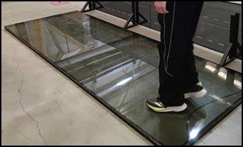 “看,玻璃可承千斤!”同学们惊呼中,纷纷踏上玻璃板,跳跃、触摸,亲身感受发电玻璃那超强韧性的奇迹。在公司主管老师演示玻璃撞击实验时,好奇的同学上前尝试撞击,当双手发力尝试抬起撞击球时,撞击球却纹丝不动,只能笑叹:“超级重,抬不动啊!”