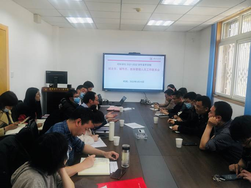 开学伊始,为贯彻全国高校思想政治工作会议精神,强化立德树人工作,更好发挥教师对学生发展、成长成才的指导作用,提升班级管理水平,增强班级管理工作的针对性和时效性, 3月10日下午3:00,beat365中文官方网站新学期班主任、辅导员、教务管理人员工作联系会在学院会议室召开,党委副书记张晓满教授,副院长叶金文教授,2020级和2021级班主任、辅导员、教务员参加了此次工作会,会议由叶金文教授主持。