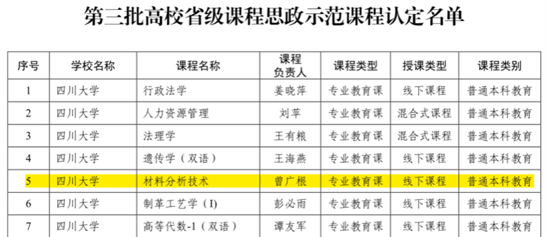 beat365官网《材料分析技术》课程被认定为省级课程思政示范课程