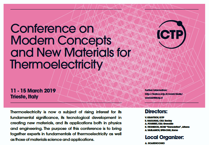 Conference on Modern Concepts and New Materials for Thermoelectricity