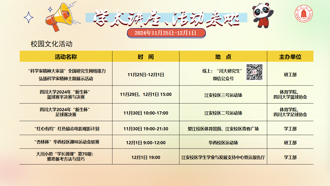 校园活动文化预告(11月25日-12月1日)