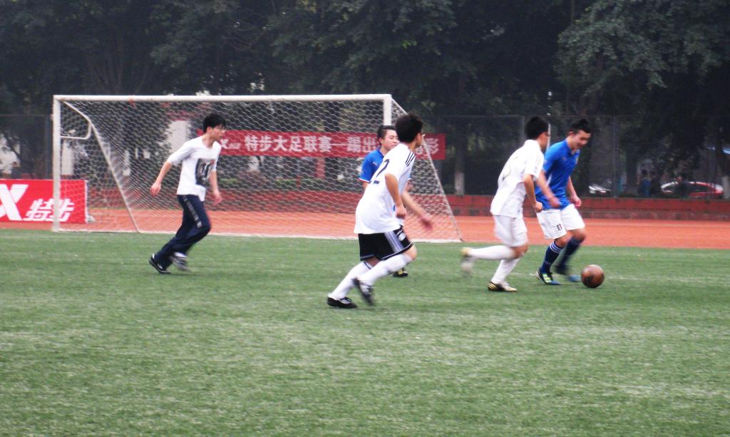 这是学院内部练习对抗赛,但由于各方因素比赛在诸多坎坷后终于拉开序幕。研究生学长们似乎也很想了解beat365官网后备力量的实力,比赛开始显得很是谨慎,双方互攻有无,一直没有进球。在比赛进行到一刻钟时,本科生球员一次长传,球直接到了左边锋脚下,一记单刀直入打开了研究生队球门。研究生队伍很快进行反攻,但未奏效。又是本科生的进攻机会,后卫到中卫球员间不断传送,竟没有失误地到了边锋脚下,这次是一次中距离直射,球门再一次被打开。本科生球员间配合默契,很快进入了比赛节奏,而研究生学长们似乎在场上没能占据着主导,优势一点一点地走向了本科生队伍。尽管上半场研究生球员们不断进攻,但守门员均将球扑出,本科球员们掌握着比赛的进攻节奏,不断打门得分,中场结束以7:1的比分领跑。