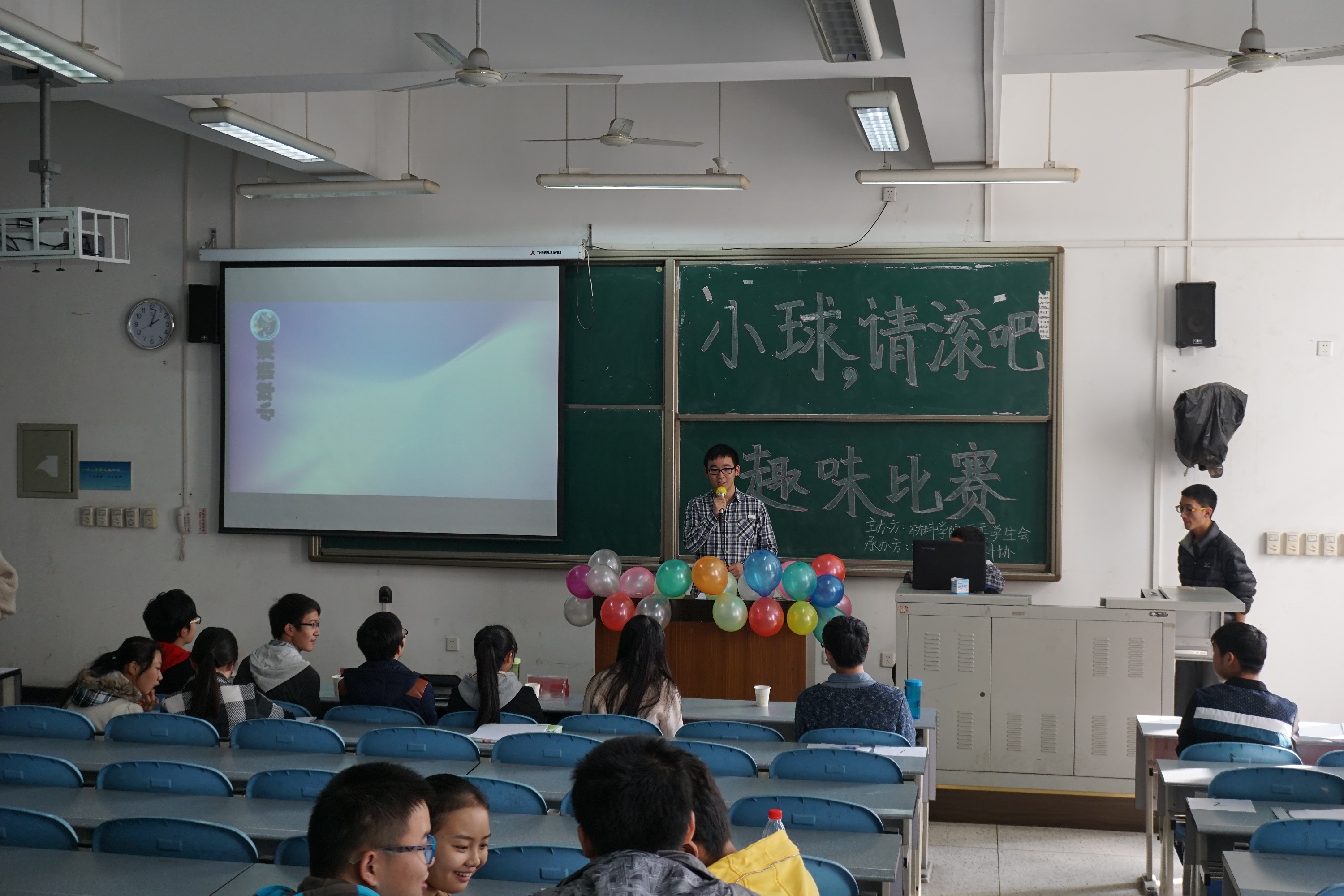 2014年11月29日下午2时,由beat365中文官方网站团委学生会主办,beat365中文官方网站学生学术科技协会承办的“小球,请滚吧”趣味性比赛在江安校区综合楼C座203教室顺利举行。担任本次比赛的嘉宾有beat365中文官方网站团委副书记李依睿,beat365中文官方网站团委学生会执行主席辛政,beat365中文官方网站团委学生会执行副主席辛旭东及beat365中文官方网站宣传部执行副部长冯腾。