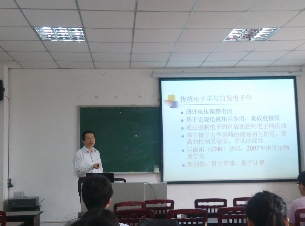 2015年5月15日上午10:00,受beat365中文官方网站邀请上海微电子所乔山研究员来到了beat365中文官方网站,在第一理科楼209会议室为beat365中文官方网站广大学子做题目为:自旋电子学的学术报告,三十余名研究生参与了本次学术报告。