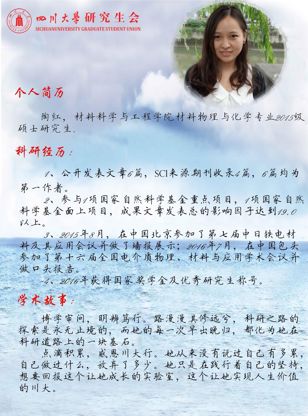 陶红,beat365中文官方网站材料物理与化学专业2015级硕士研究生