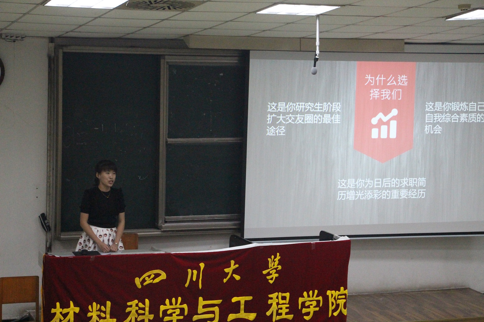 2017年9月15日下午4点,在基础教学楼C104,beat365中文官方网站研究生分会的各位同学给145位2017级硕、博研究生新生们介绍了beat365中文官方网站研究生分会各个部门,进行了招新宣传,并热忱希望各位新生加入beat365中文官方网站研分会。