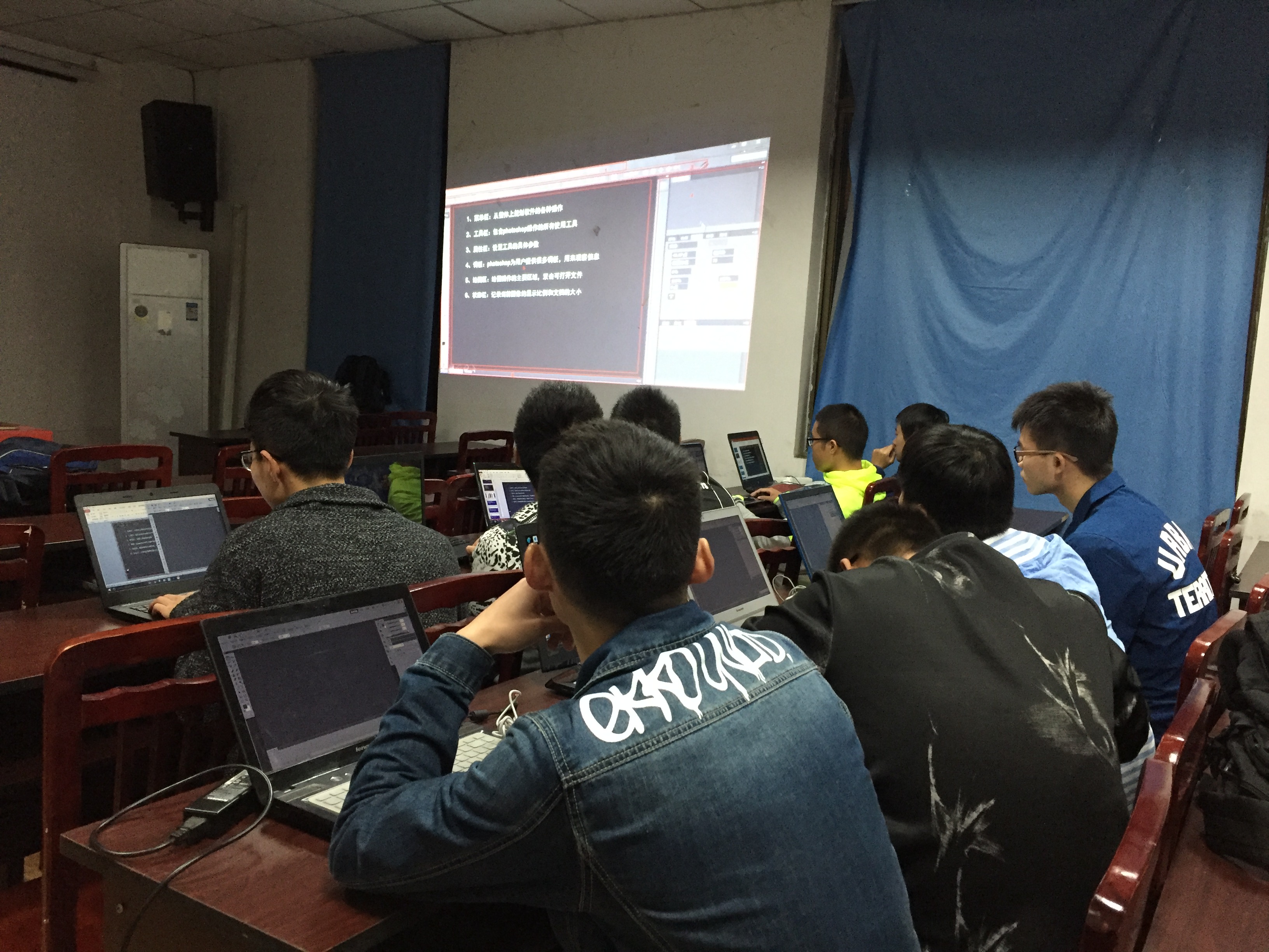 主办方于18:30到达活动现场为大家预装培训软件,并拷贝有之后需要用到的演练素材。培训会19:00正式开始,唐小玲师姐先向大家介绍了PS软件中一些入门级的专业名词术语,例如:位图、像素、矢量图等,这让大家对于PS有了一个基本的了解;随后对工具栏常用的图标进行了详细的描述展示,在师姐的带领下,同学们随之对软件有了大体上的认识;接下来,唐小玲师姐给大家介绍了如何使用PS进行截图、改变图片元素、文字添加、文字修饰、各图层的截取操作等,讲到每一类型的具体操作时,师姐都向我们进行了具体的操作演示,大家也都跟着做了相应的操作。讲解完毕,同学们积极动手实践,踊跃提问。在大家对软件初步熟悉起来之后,为了检验学习成果,师姐布置了相应的随堂小测试,最终根据设计成品效果,评判出名次,主办方也为大家颁发了奖品。