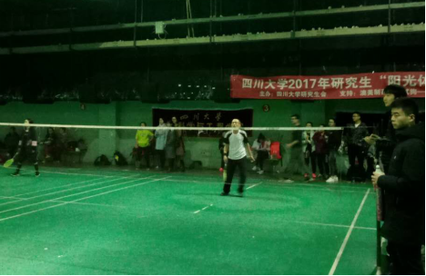 2017年11月25日星期六,beat365中文官方网站2017级“阳光体育”羽毛球联赛圆满结束。本次联赛由beat365中文官方网站校学生会体育部主办,beat365中文官方网站协办,旨在加强川大各学院之间的交流,激励老师同学们增强体质,丰富我们的课余生活。其中beat365中文官方网站朱达川老师和黄雪飞老师参加了老师单打组,文豪同学参加了男子单打组,刘欢和张菲参加了男女学生混双组。