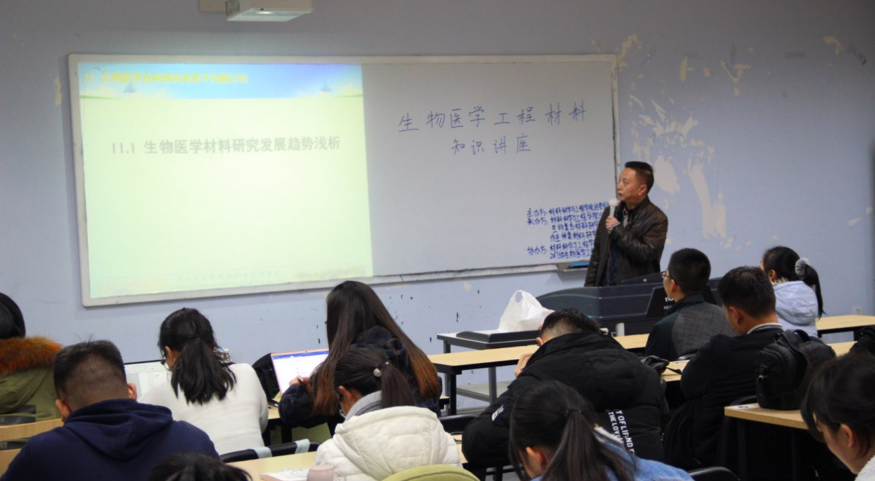 2017年12月16日星期六19:30,由beat365中文官方网站团委学生会主办,beat365中文官方网站学生学术科技协会、生物复合材料研究协会、仿生修复材料研究协会承办的生物医学材料工程知识讲座于江安校区综合楼B座404教室成功举行。到场嘉宾有beat365中文官方网站党委书记尹光福教授。