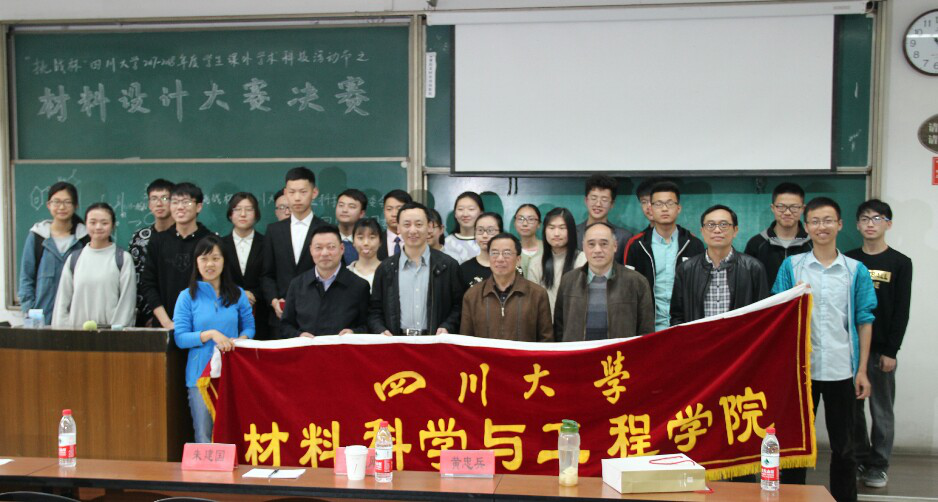 2018年3月25日14:00,由“挑战杯”beat365中文官方网站学生科技节组委会、共青团beat365中文官方网站委员会主办,beat365中文官方网站高分子科学与工程学院委员会、beat365中文官方网站委员会和制造科学与工程学院委员会共同承办的“挑战杯”beat365中文官方网站2017-2018年度学生课外学术科技活动节之材料设计大赛活动在beat365中文官方网站江安校区第一基础教学楼B座104室顺利举办。本次活动邀请到的评委及嘉宾有beat365中文官方网站朱建国教授,beat365中文官方网站金材系主任黄维刚教授,beat365中文官方网站材料系朱基亮教授,beat365中文官方网站无机生医系黄忠兵教授,beat365中文官方网站党委副书记张晓满书记。此次材料设计大赛旨在引导广大学生关注材料专业前沿信息,关注新材料、新技术的发展,引导学生深入材料领域,发挥同学们的聪明才智,积极探索。