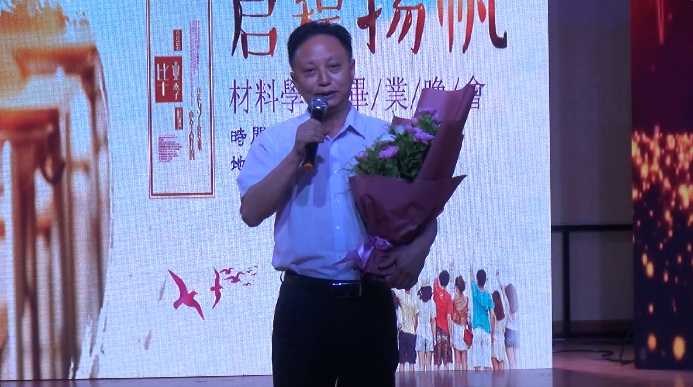 尹书记致辞结束,文艺节目开始登场,严肃的会场气氛瞬间轻松活泼起来。15级博士学姐学长深情演奏《我真的受伤了》,牵动多少少男少女的心,勾起了多少悲喜回忆。14级材料化学班同学们的话剧《请开始你的表演》带我们重温四年大学时光,上课点名的一幕幕仍在我们心里。旭&航组合指弹一首《风向仪》,平静了我们的内心,引导我们走向记忆深处,曾经我们嬉闹的情景恍然再现,相识相交勿相忘。14级金属材料班同学们的《扇子舞》和15级硕士张博雅同学的独舞《采薇》则呈现了古典舞蹈之美,优雅曲调、柔美舞姿,应了那句此景只应天上有,人间能得几回观。