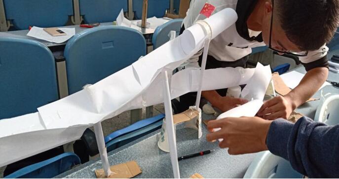 此次比赛为小球轨道制作比赛,百余名学生满怀激情地参加了本次制作比赛,并积极配合,团结协作。首先,beat365中文官方网站分科协执行副部长晏乔宏为同学们讲解了活动流程,比赛规则,并一一强调了参赛选手应该注意的问题。比赛前,工作人员为选手分发制作轨道所需材料,并进行登记。比赛正式开始,各组同学紧张设计小球所经的轨道,用所给材料动手制作,并对所制作的轨道进行测试。经过紧张激烈的90分钟,许多极富创意的轨道脱颖而出。