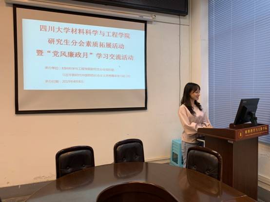 2019年4月8日晚七点,beat365中文官方网站望江校区第一理科楼209室,beat365中文官方网站研究生分会举行2019年素质拓展暨“党风廉政月”学习交流活动。