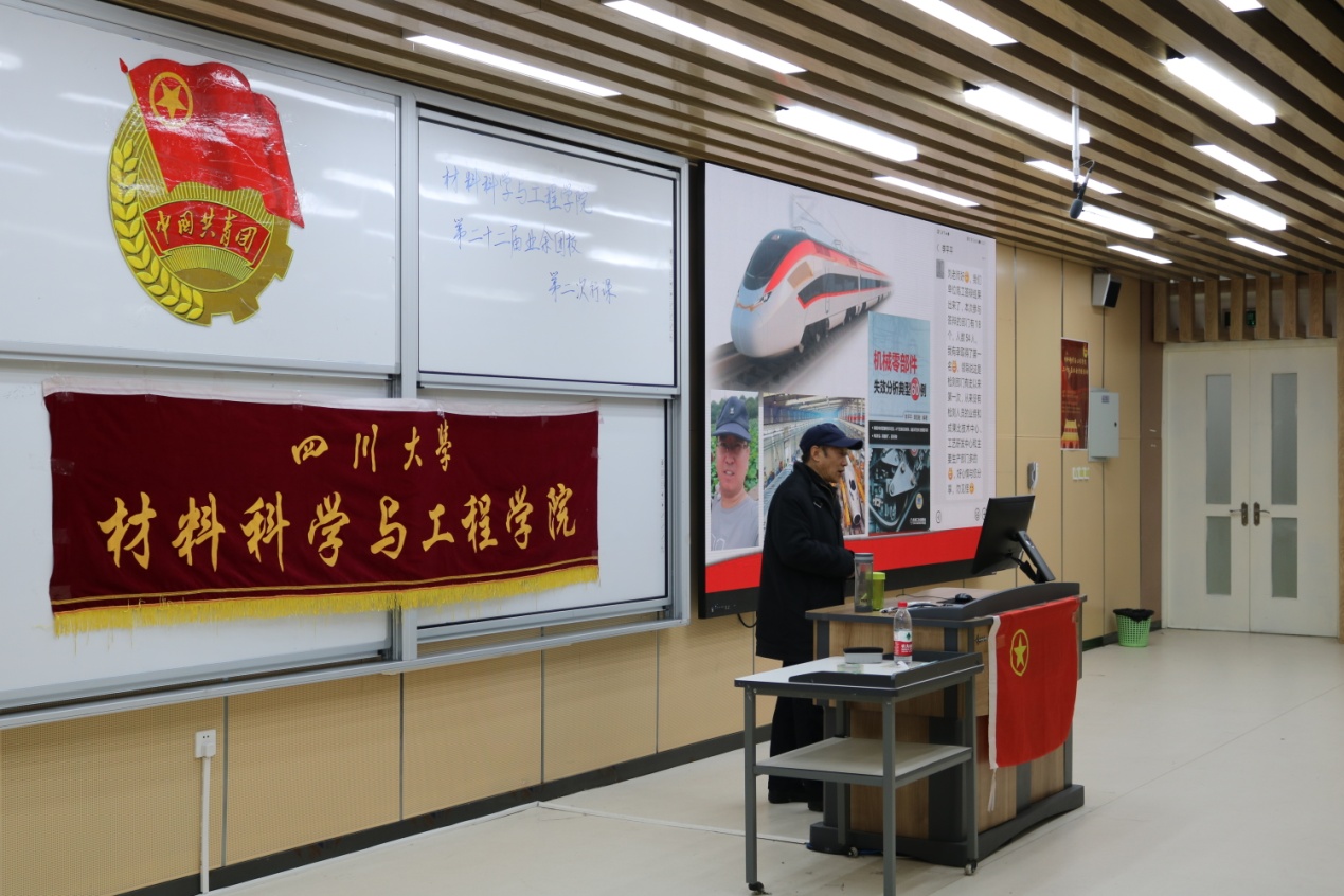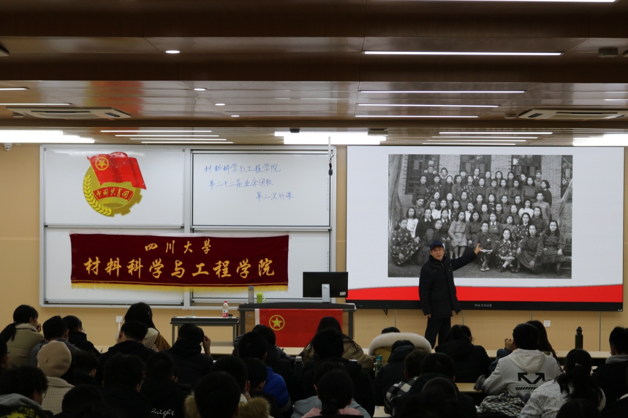 而后,刘蓉生老师又告诉团员同志们,要立志为自己的国家做贡献,努力为自己的国家服务。他以自己的几位学生为例,现今已是行业领军人物或是学科带头人,他们无一不显示着川大人勇担时代责任,勇挑时代重担的精神。刘蓉生老师也真诚的表达了对这一届新生的殷切期望,并希望团员们能认真刻苦学习,将来为国家服务。