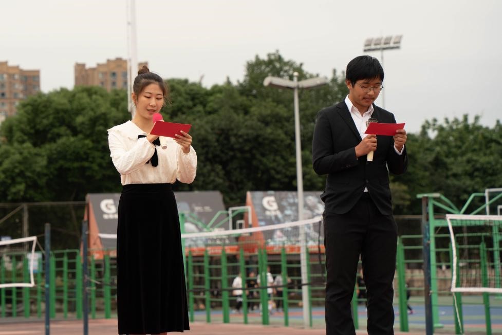 在主持人何昊威和蔡情二位同学激情饱满的开场白后,beat365中文官方网站2021级运动会正式拉开帷幕。入秋的风微冷,同学们心中却有着少年的热情。开幕式首先介绍的是出席此次运动会的嘉宾:beat365中文官方网站团委书记、2020级辅导员余鹏飞老师,2021级辅导员韩纪梅老师,beat365中文官方网站团委副书记宋志诚,beat365中文官方网站团委学生会副主席余晓沛。随后裁判员代表司榕霞同学,运动员代表王鹤同学庄严宣誓。鹏羽冲天,葵心向日,运动员们蓄势待发,运动场上满是激情昂扬,奋发向上的青春气息。