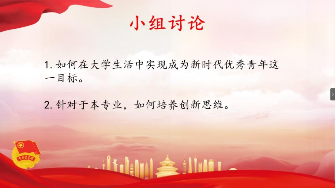 在余老师授课结束后,同学们就如何在大学生活中实现成为新时代优秀青年这一目标及针对材料科学与工程专业应该如何培养创新思维展开了激烈的小组讨论,从小组代表的精彩发言中,我们感受到了专属于新时代青年的蓬勃生机与活力。