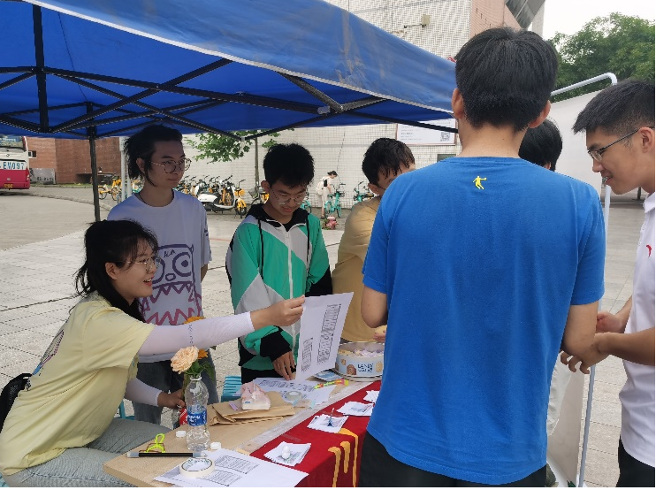 活动正式开始后,来往同学们对本次活动产生浓厚的兴趣,积极参与,纷纷来到摊位了解活动内容。在此次“校园寻宝活动”中,工作人员邀请同学们参与“青年大学习”的趣味问答,同学们根据实际情况选取不同难度的题目并回答,答题结束后,志愿者们向同学们讲述“共青团小知识”,并赠予同学们“校园藏宝图”,在江安校区奔跑寻找散落的奖品,现场气氛十分火热。