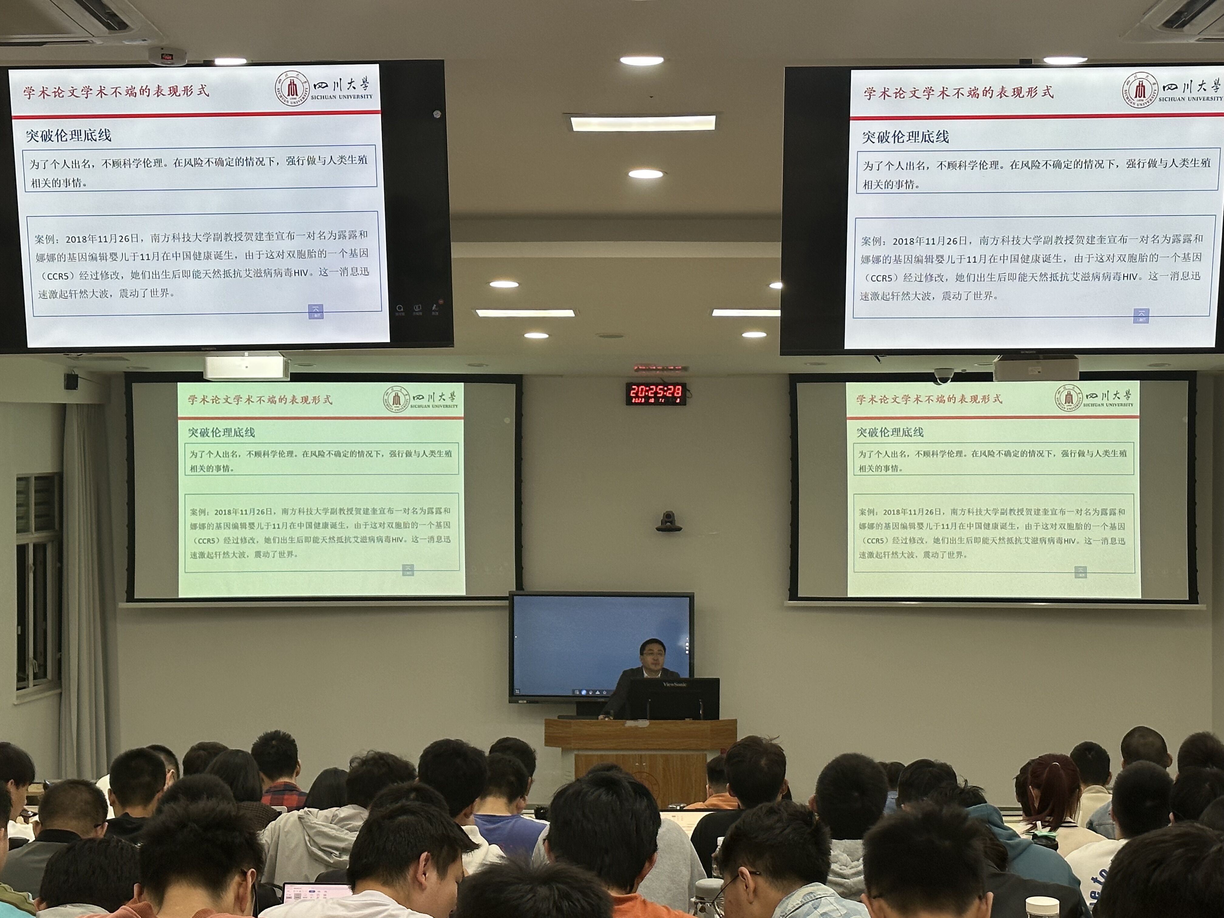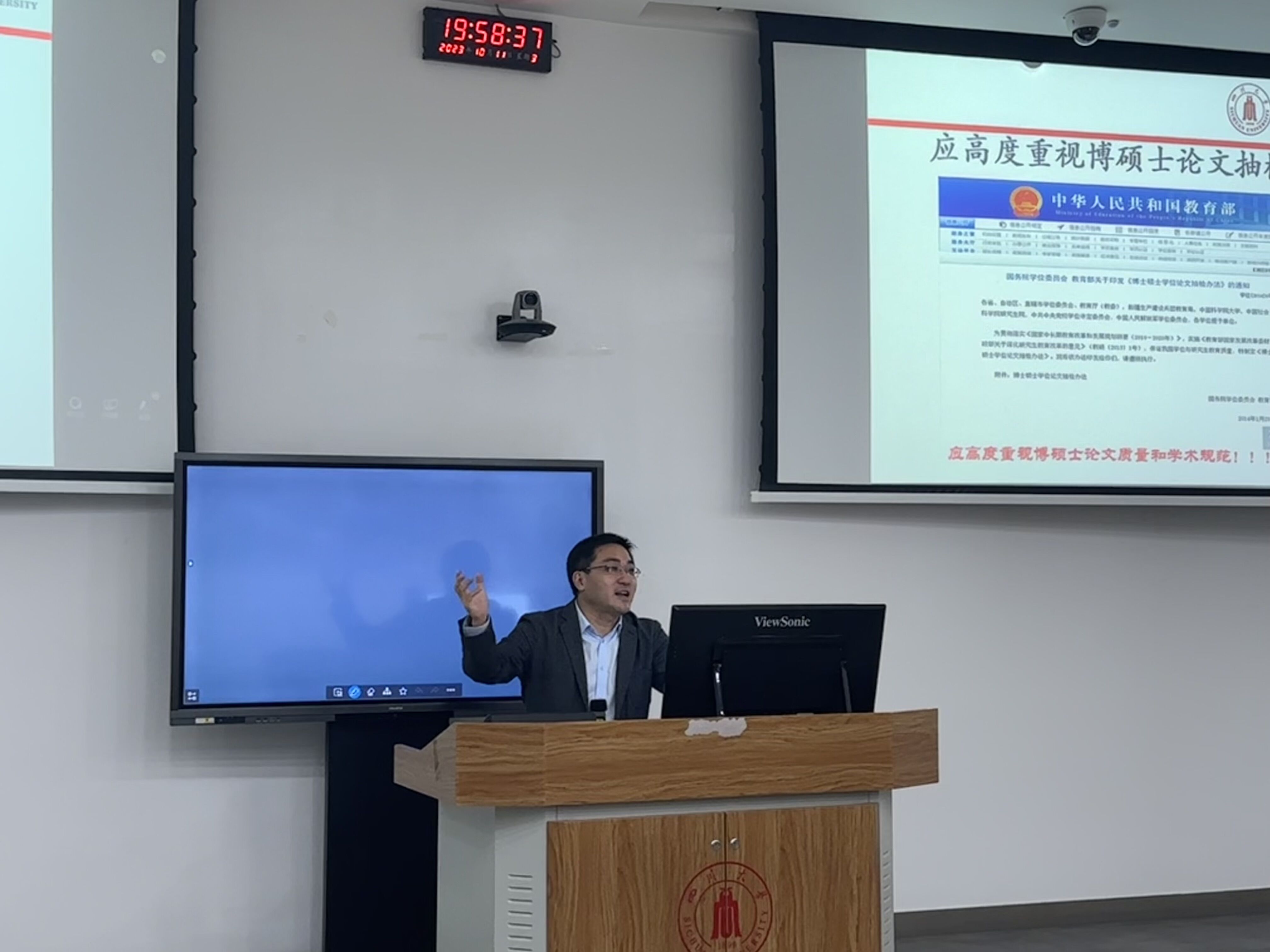 为了加强研究生学术道德建设,维护学术诚信,积极营造良好严明的学术氛围。2023年10月11日,beat365中文官方网站吴家刚教授,在基础教学楼C区202教室,为beat365中文官方网站2023级研究生新生讲授“学术诚信与学术道德”思想教育课。