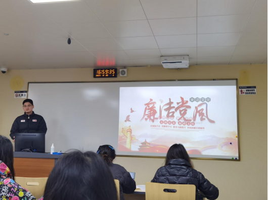 2023年12月20日16: 45,由中共beat365中文官方网站2023级硕士党支部举办的以“廉洁党风,廉政文化”为主题的组织生活在研究生院三区304教室举行。由中共beat365中文官方网站2023级硕士党支部支部书记韩纪梅同志担任主持人,党员代表贾淯栋同志作专题发言。