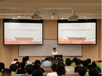 高年级研究生代表魏晓薇发言,为学弟学妹提出了未来学习建议。